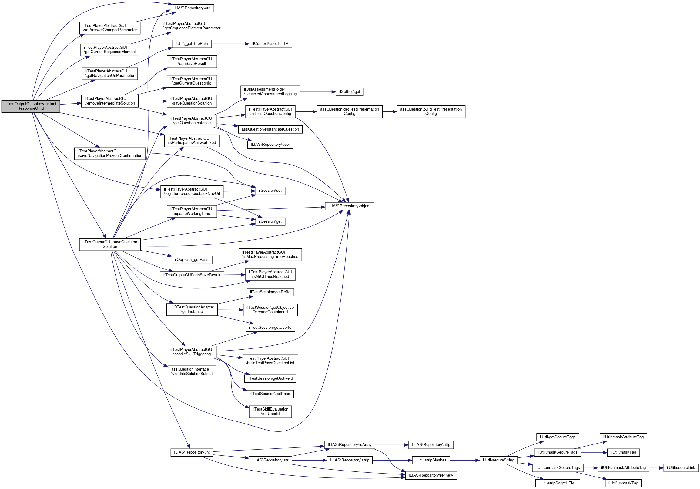 References ILIAS\Repository\ctrl(), ilTestPlayerAbstractGUI\getCurrentSequenceElement(), ilLOTestQuestionAdapter\getInstance(), ilTestPlayerAbstractGUI\getInstantResponseParameter(), ilTestPlayerAbstractGUI\getQuestionGuiInstance(), ilTestPlayerAbstractGUI\getRegisteredForcedFeedbackNavUrl(), ilTestPlayerAbstractGUI\getTestNavigationToolbarGUI(), handlePrimaryButton(), handleTearsAndAngerNoObjectiveOrientedQuestion(), ilTestPlayerAbstractGUI\handleTearsAndAngerQuestionIsNull(), ILIAS\Repository\help(), ilTestPlayerAbstractGUI\isForcedFeedbackNavUrlRegistered(), ilTestPlayerAbstractGUI\isParticipantsAnswerFixed(), ilObjTest\isQuestionObligatory(), isValidSequenceElement(), ILIAS\Repository\lng(), ILIAS\Repository\object(), ilTestPlayerAbstractGUI\populateInstantResponseBlocks(), ilTestPlayerAbstractGUI\populateInstantResponseModal(), ilTestPlayerAbstractGUI\populateQuestionNavigation(), populateQuestionOptionalMessage(), ilTestPlayerAbstractGUI\populateTestNavigationToolbar(), ilTestPlayerAbstractGUI\prepareTestPage(), ilTestPlayerAbstractGUI\PRESENTATION_MODE_EDIT, ilTestPlayerAbstractGUI\PRESENTATION_MODE_VIEW, ilSession\set(), ilTestPlayerAbstractGUI\showQuestionEditable(), ilTestPlayerAbstractGUI\showQuestionViewable(), ilTestPlayerCommands\SUBMIT_INTERMEDIATE_SOLUTION, and ilTestPlayerAbstractGUI\unregisterForcedFeedbackNavUrl().
