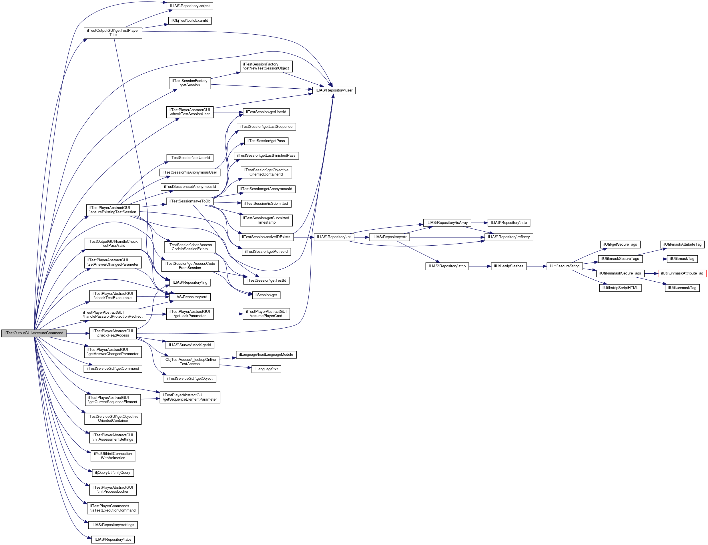 Here is the call graph for this function:| ilTestOutputGUI::executeCommand | ( | ) |