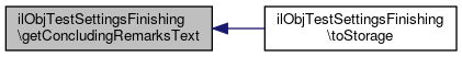 Here is the caller graph for this function:| ilObjTestSettingsFinishing::getConcludingRemarksText | ( | ) |