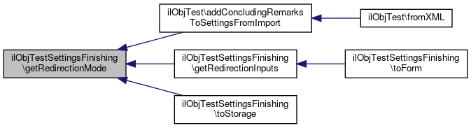 Here is the caller graph for this function:| ilObjTestSettingsFinishing::getRedirectionMode | ( | ) |