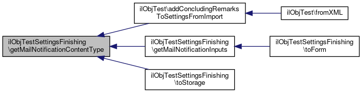 Here is the caller graph for this function:| ilObjTestSettingsFinishing::getMailNotificationContentType | ( | ) |