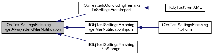Here is the call graph for this function:| ilObjTestSettingsFinishing::getAlwaysSendMailNotification | ( | ) |