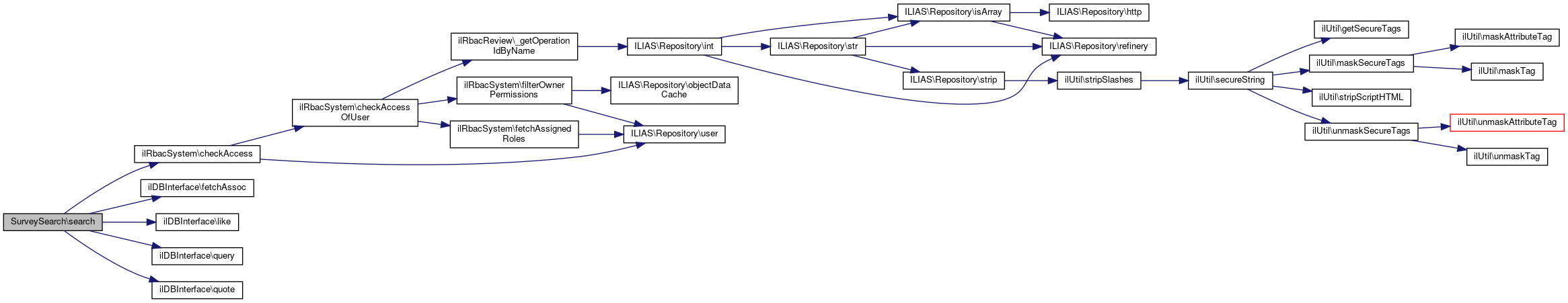 If this is not the case or you just want to try ILIAS, you'll find us at: https://www.ilias.de https://github.com/ILIAS-eLearning Class for search actions in ILIAS survey tool The SurveySearch class defines and encapsulates basic methods and attributes to search the ILIAS survey tool for questions.