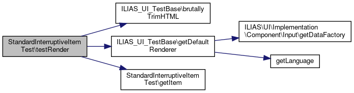 Here is the call graph for this function:| StandardInterruptiveItemTest::testRender | ( | ) |