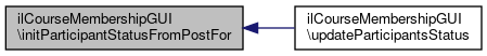 References ILIAS\Repository\access(), ILIAS\Repository\ctrl(), ilMembershipGUI\getMembersObject(), ILIAS\FileDelivery\http(), initParticipantStatusFromPostFor(), ILIAS\Repository\lng(), ILIAS\Repository\refinery(), ilCourseMembershipMailNotification\TYPE_BLOCKED_MEMBER, ilCourseMembershipMailNotification\TYPE_UNBLOCKED_MEMBER, and updateLPFromStatus().