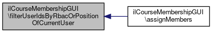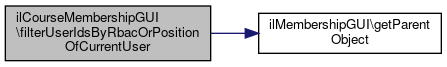 Here is the call graph for this function:| ilCourseMembershipGUI::filterUserIdsByRbacOrPositionOfCurrentUser | ( | array | $a_user_ids | ) |