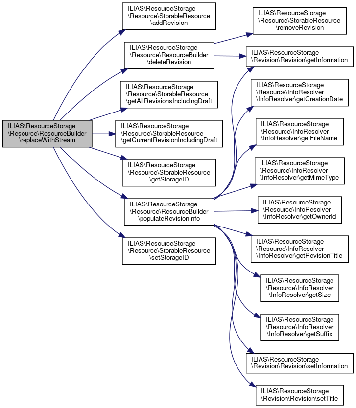 Here is the call graph for this function:| ILIAS\ResourceStorage\Resource\ResourceBuilder::replaceWithStream | ( | StorableResource | $resource, |