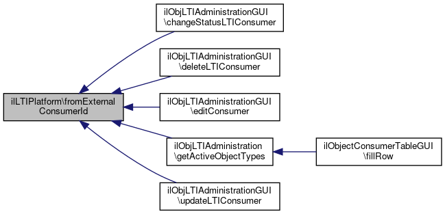 Referenced by ilObjLTIAdministrationGUI\changeStatusLTIConsumer(), ilObjLTIAdministrationGUI\deleteLTIConsumer(), ilObjLTIAdministrationGUI\editConsumer(), ilObjLTIAdministration\getActiveObjectTypes(), and ilObjLTIAdministrationGUI\updateLTIConsumer().