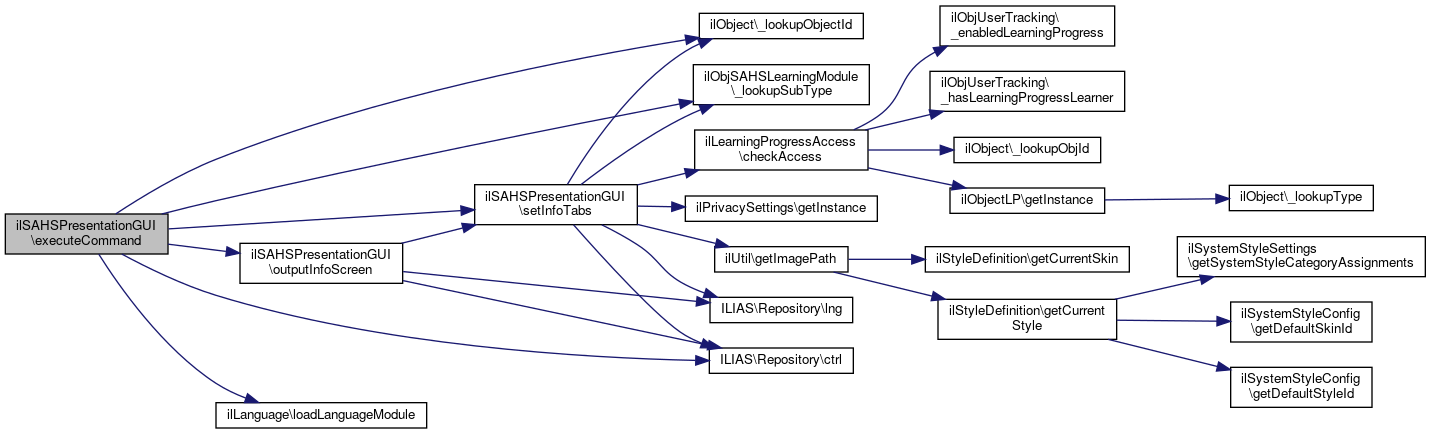 Here is the call graph for this function:| ilSAHSPresentationGUI::executeCommand | ( | ) |