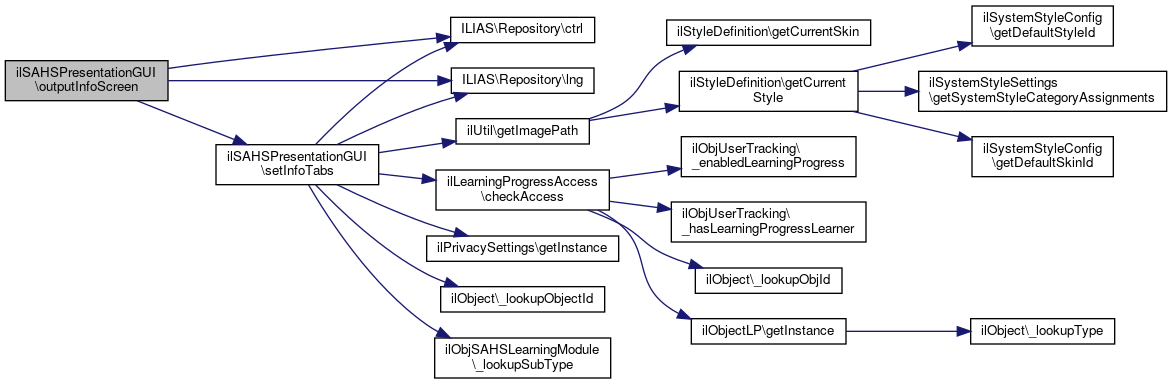 References $DIC, ilObject\_lookupObjectId(), ilObjSAHSLearningModule\_lookupSubType(), ILIAS\Repository\ctrl(), ilLanguage\loadLanguageModule(), ilLearningProgressBaseGUI\LP_CONTEXT_REPOSITORY, outputInfoScreen(), and setInfoTabs().
