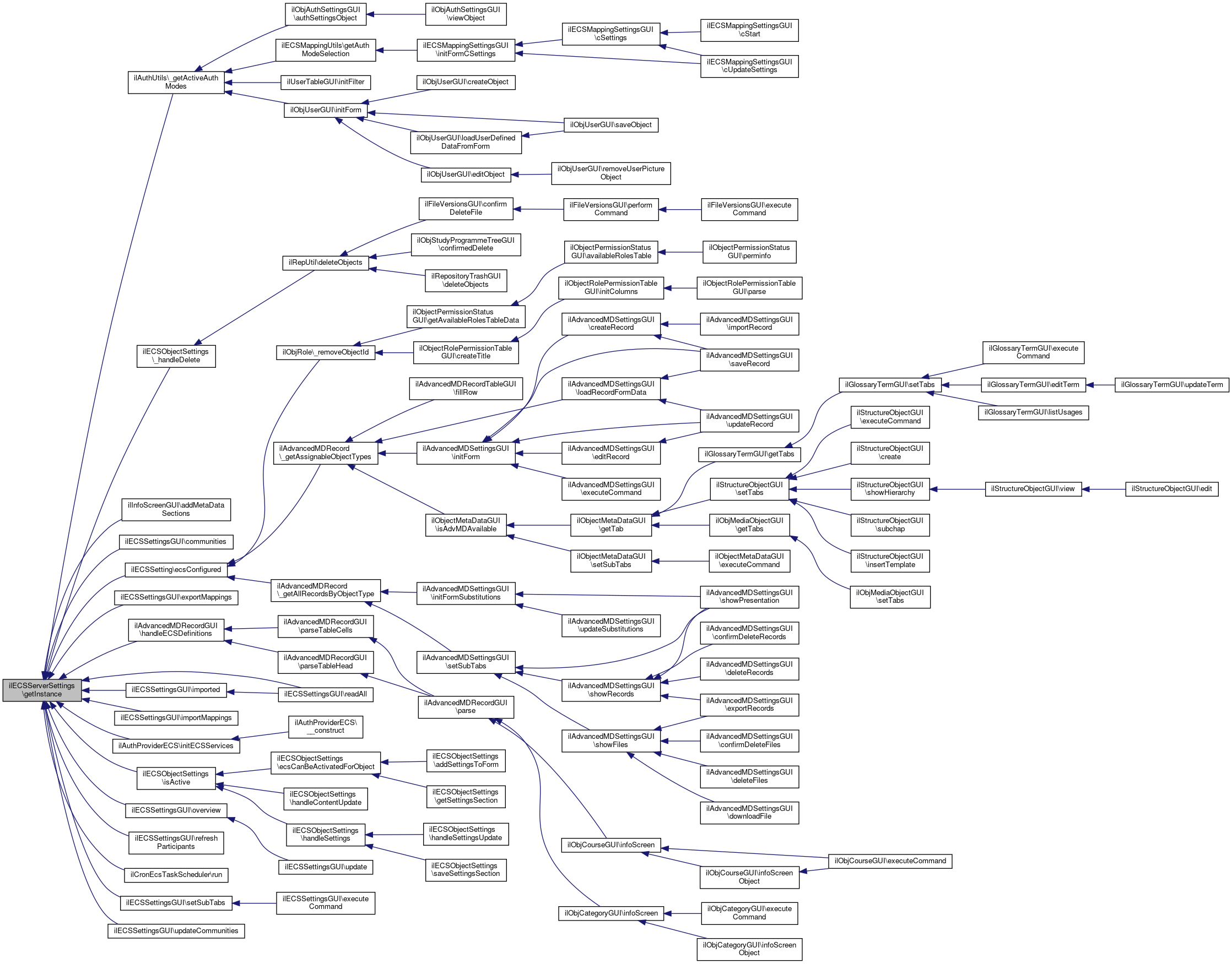 Referenced by ilAuthUtils\_getActiveAuthModes(), ilECSObjectSettings\_handleDelete(), ilInfoScreenGUI\addMetaDataSections(), ilECSSettingsGUI\communities(), ilECSSetting\ecsConfigured(), ilECSSettingsGUI\exportMappings(), ilAdvancedMDRecordGUI\handleECSDefinitions(), ilECSSettingsGUI\imported(), ilECSSettingsGUI\importMappings(), ilAuthProviderECS\initECSServices(), ilECSObjectSettings\isActive(), ilECSSettingsGUI\overview(), ilECSSettingsGUI\readAll(), ilECSSettingsGUI\refreshParticipants(), ilCronEcsTaskScheduler\run(), ilECSSettingsGUI\setSubTabs(), and ilECSSettingsGUI\updateCommunities().