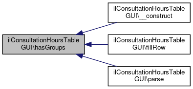 Here is the caller graph for this function:| ilConsultationHoursTableGUI::hasGroups | ( | ) |