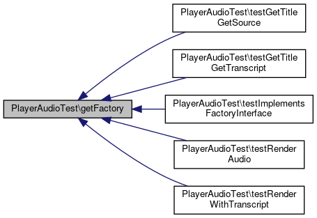 Here is the call graph for this function:| PlayerAudioTest::testImplementsFactoryInterface | ( | ) |