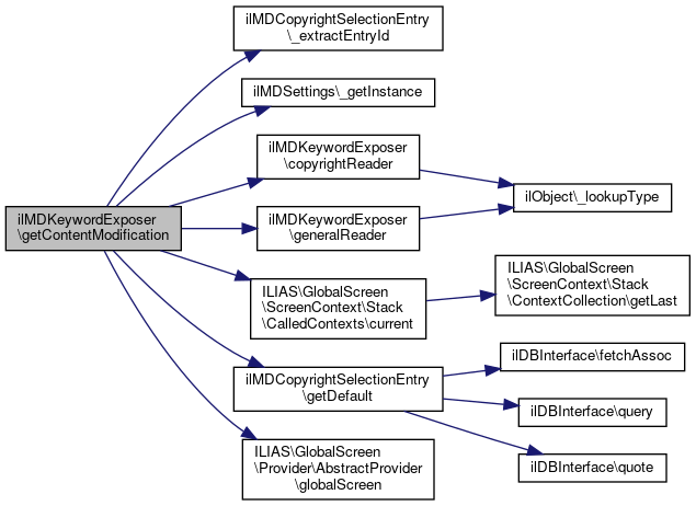 Here is the caller graph for this function:| ilMDKeywordExposer::getContentModification | ( | CalledContexts | $screen_context_stack | ) |