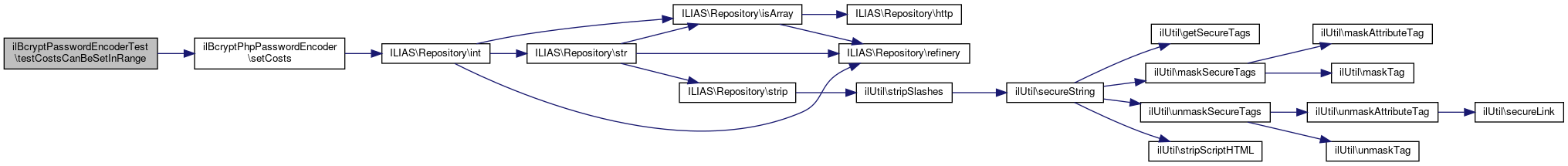 Here is the call graph for this function:| ilBcryptPasswordEncoderTest::testCostsCanBeSetInRange | ( | string | $costs, |