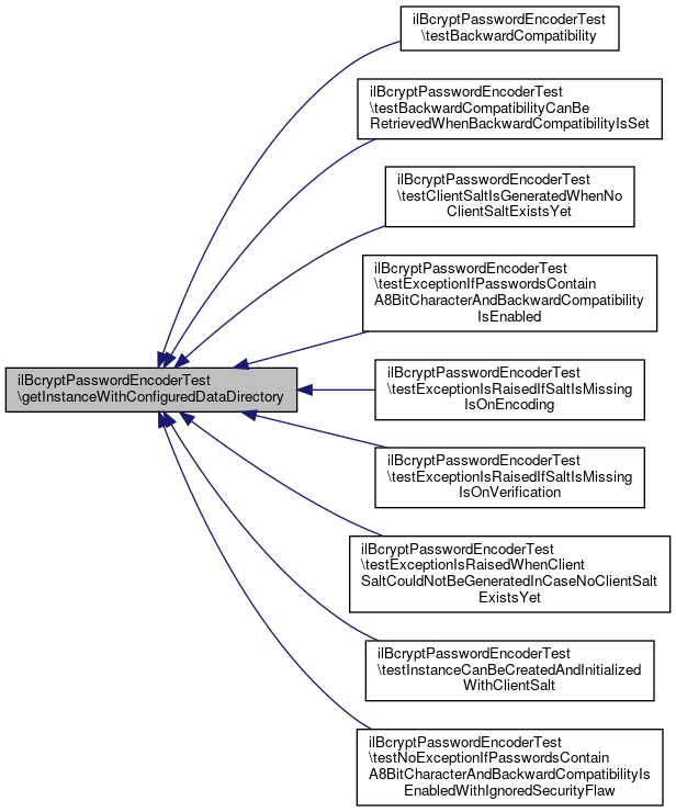 Here is the call graph for this function:| ilBcryptPasswordEncoderTest::testBackwardCompatibilityCanBeRetrievedWhenBackwardCompatibilityIsSet | ( | ) |