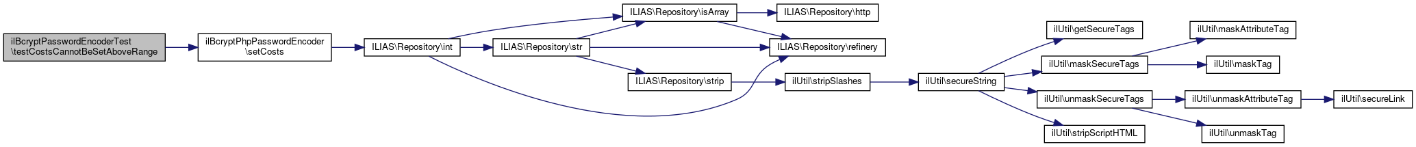 Here is the call graph for this function:| ilBcryptPasswordEncoderTest::testCostsCannotBeSetAboveRange | ( | ilBcryptPasswordEncoder | $encoder | ) |