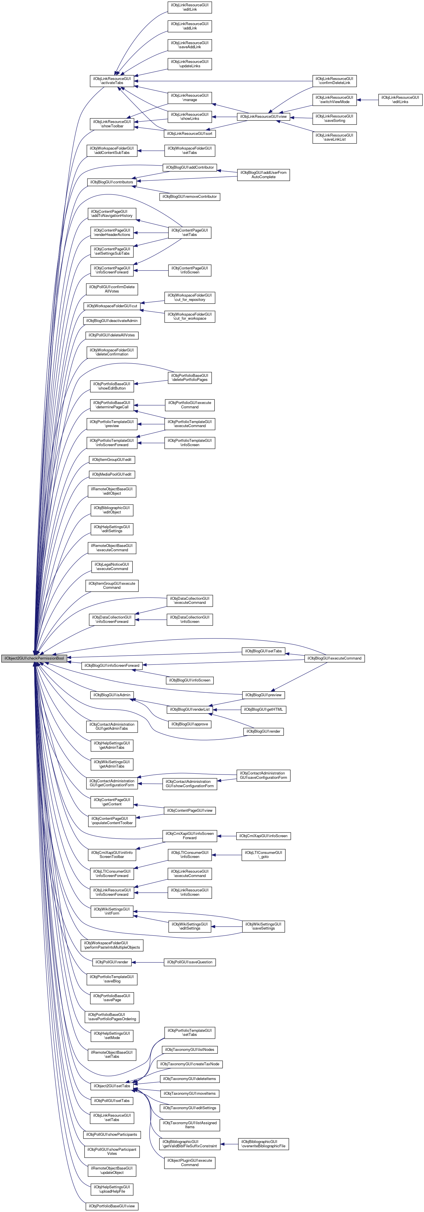 Referenced by ilObjBibliographicGUI\addLocatorItems(), ilObjPollGUI\addLocatorItems(), ilObjFileGUI\addLocatorItems(), ilObjBlogGUI\addLocatorItems(), ilObjWorkspaceFolderGUI\checkPassword(), ilObjPortfolioGUI\checkPermissionBool(), ilObjTaxonomyGUI\checkPermissionBool(), checkPermissionBool(), ilObjBlogGUI\contributors(), ilObjWorkspaceFolderGUI\deleteConfirmation(), deleteConfirmedObjects(), ilObjFileGUI\getNodeID(), ilObjWorkspaceFolderGUI\performPasteIntoMultipleObjects(), ilObjFileGUI\putObjectInTree(), ilObjBlogGUI\renderFullScreen(), ilObjBlogGUI\renderFullscreenHeader(), ilObjBlogGUI\renderNavigation(), ilObjExerciseVerificationGUI\save(), ilObjSCORMVerificationGUI\save(), ilObjCmiXapiVerificationGUI\save(), ilObjLTIConsumerVerificationGUI\save(), ilObjCourseVerificationGUI\save(), ilObjTestVerificationGUI\save(), ilObjPortfolioGUI\saveBlog(), and setTabs().