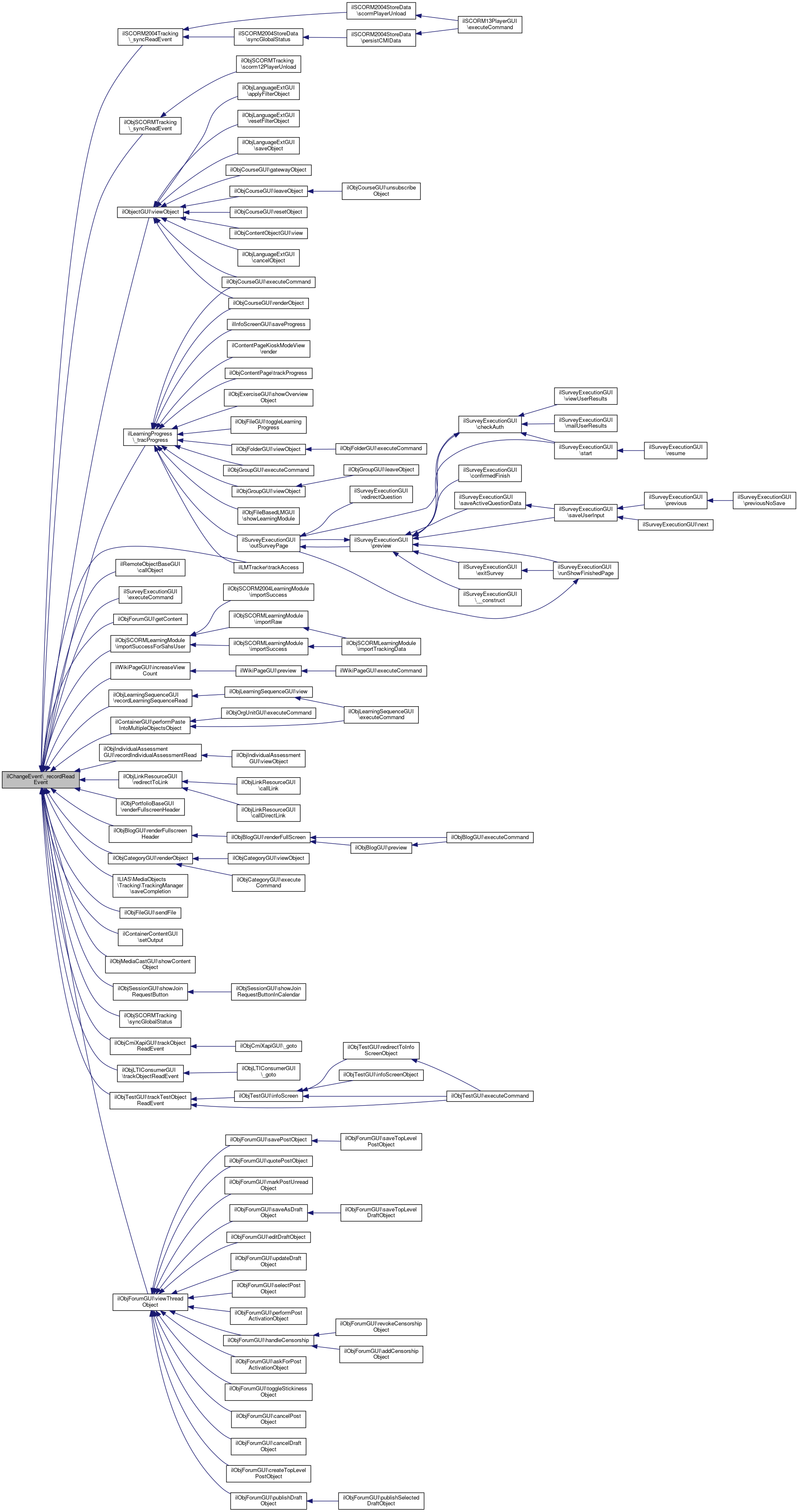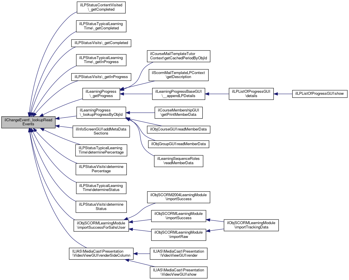 Referenced by ilSCORM2004Tracking\_syncReadEvent(), ilObjSCORMTracking\_syncReadEvent(), ilLearningProgress\_tracProgress(), ilRemoteObjectBaseGUI\callObject(), ilSurveyExecutionGUI\executeCommand(), ilObjForumGUI\getContent(), ilObjSCORMLearningModule\importSuccessForSahsUser(), ilWikiPageGUI\increaseViewCount(), ilContainerGUI\performPasteIntoMultipleObjectsObject(), ilObjIndividualAssessmentGUI\recordIndividualAssessmentRead(), ilObjLearningSequenceGUI\recordLearningSequenceRead(), ilObjLinkResourceGUI\redirectToLink(), ilObjPortfolioBaseGUI\renderFullscreenHeader(), ilObjBlogGUI\renderFullscreenHeader(), ilObjCategoryGUI\renderObject(), ILIAS\MediaObjects\Tracking\TrackingManager\saveCompletion(), ilObjFileGUI\sendFile(), ilContainerContentGUI\setOutput(), ilObjMediaCastGUI\showContentObject(), ilObjSessionGUI\showJoinRequestButton(), ilObjSCORMTracking\syncGlobalStatus(), ilLMTracker\trackAccess(), ilObjCmiXapiGUI\trackObjectReadEvent(), ilObjLTIConsumerGUI\trackObjectReadEvent(), ilObjTestGUI\trackTestObjectReadEvent(), ilObjectGUI\viewObject(), and ilObjForumGUI\viewThreadObject().