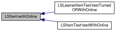 Here is the caller graph for this function:| LSItem::withOnline | ( | bool | $online | ) |