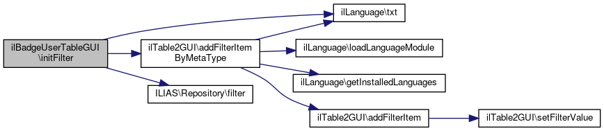 Here is the caller graph for this function:| ilBadgeUserTableGUI::initFilter | ( | ) |