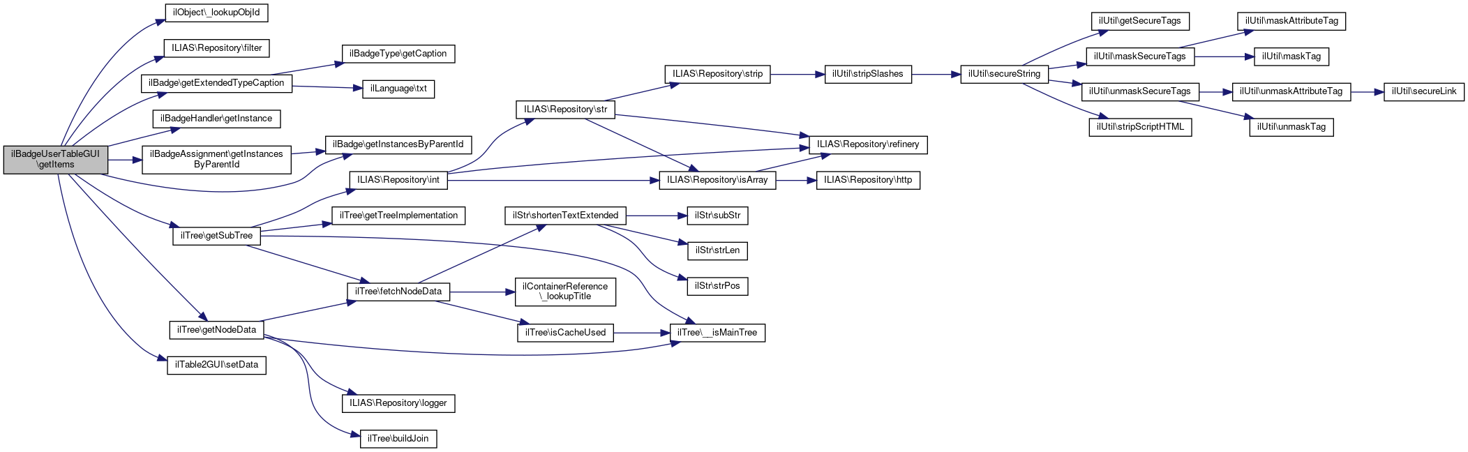 References ilTableGUI\$data, $tree, ilObject\_lookupObjId(), ILIAS\Repository\filter(), ilBadge\getExtendedTypeCaption(), ilBadgeHandler\getInstance(), ilBadge\getInstancesByParentId(), ilBadgeAssignment\getInstancesByParentId(), ilTree\getNodeData(), ilTree\getSubTree(), and ilTable2GUI\setData().