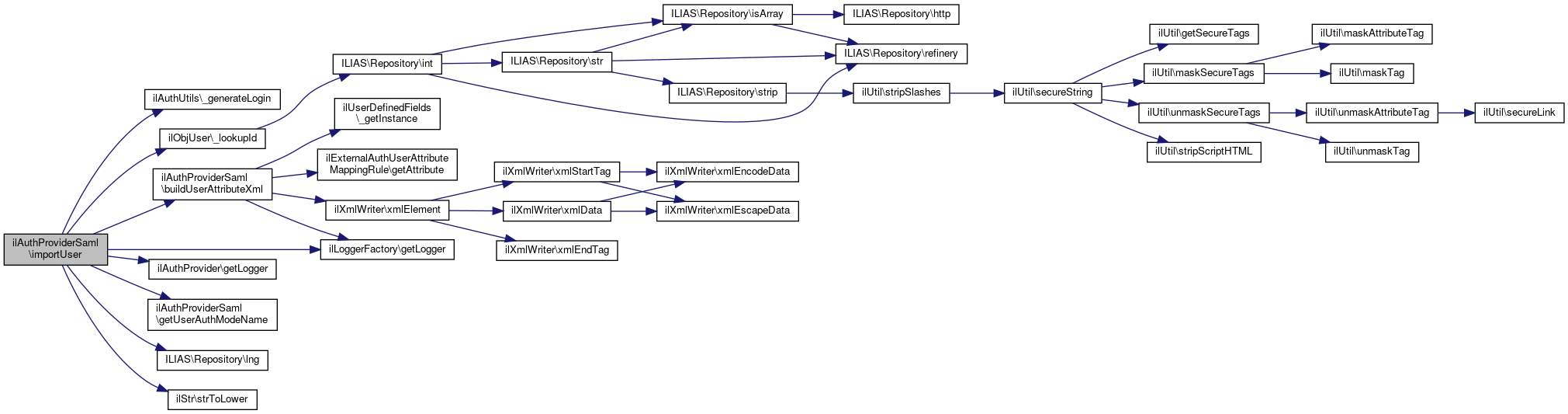 References Vendor\Package\$e, ilAuthUtils\_generateLogin(), ilObjUser\_lookupId(), buildUserAttributeXml(), ilAuthProvider\getLogger(), ilLoggerFactory\getLogger(), getUserAuthModeName(), ilUserImportParser\IL_USER_MAPPING_ID, ILIAS\Repository\lng(), ilStr\strToLower(), and USER_FOLDER_ID.
