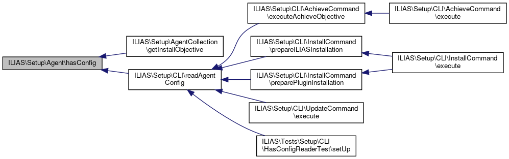 Here is the caller graph for this function:| ILIAS\Setup\Agent::hasConfig | ( | ) |