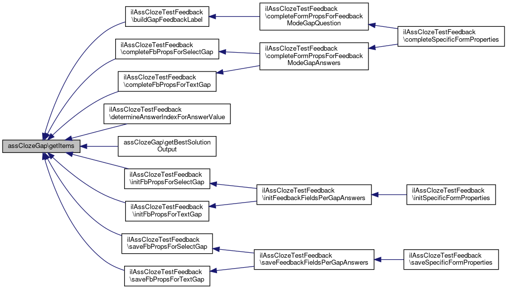 Referenced by ilAssClozeTestFeedback\completeFormPropsForFeedbackModeGapAnswers(), assClozeTestGUI\getSpecificFeedbackOutput(), ilAssClozeTestFeedback\initFeedbackFieldsPerGapAnswers(), and ilAssClozeTestFeedback\saveFeedbackFieldsPerGapAnswers().