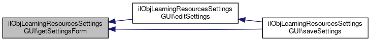 Here is the call graph for this function:| ilObjLearningResourcesSettingsGUI::getSettingsForm | ( | ) |