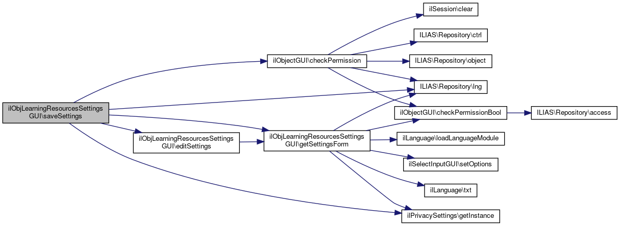 Here is the caller graph for this function:| ilObjLearningResourcesSettingsGUI::saveSettings | ( | ) |