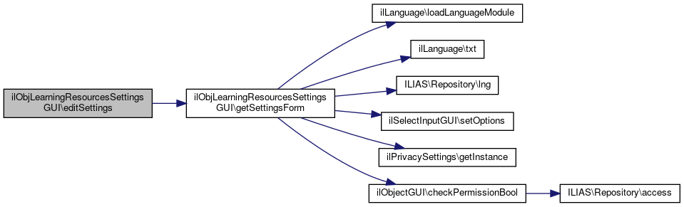 Here is the call graph for this function:| ilObjLearningResourcesSettingsGUI::editSettings | ( | ?ilPropertyFormGUI | $form = null | ) |