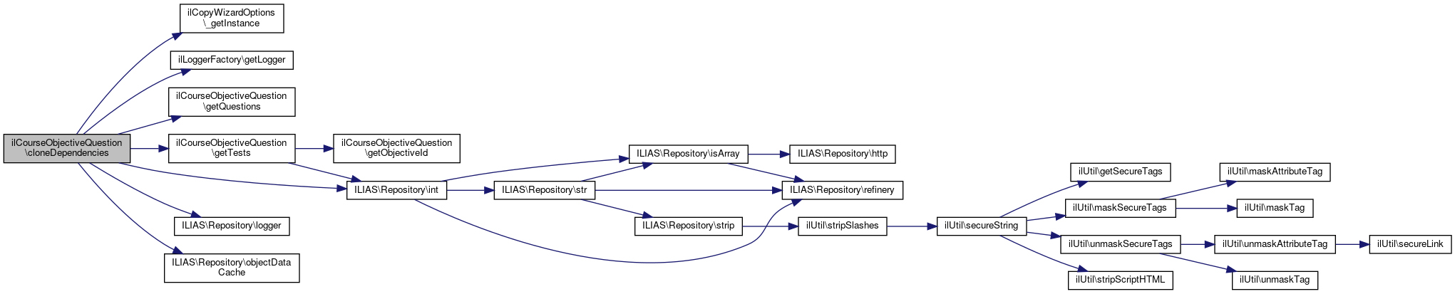 Here is the call graph for this function:| ilCourseObjectiveQuestion::cloneDependencies | ( | int | $a_new_objective, |