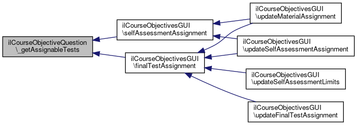 Here is the caller graph for this function:| ilCourseObjectiveQuestion::getSelfAssessmentTests | ( | ) |