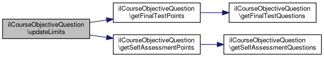 Here is the call graph for this function:| ilCourseObjectiveQuestion::updateLimits | ( | ) |