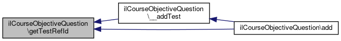 Here is the caller graph for this function:| ilCourseObjectiveQuestion::getTestRefId | ( | ) |