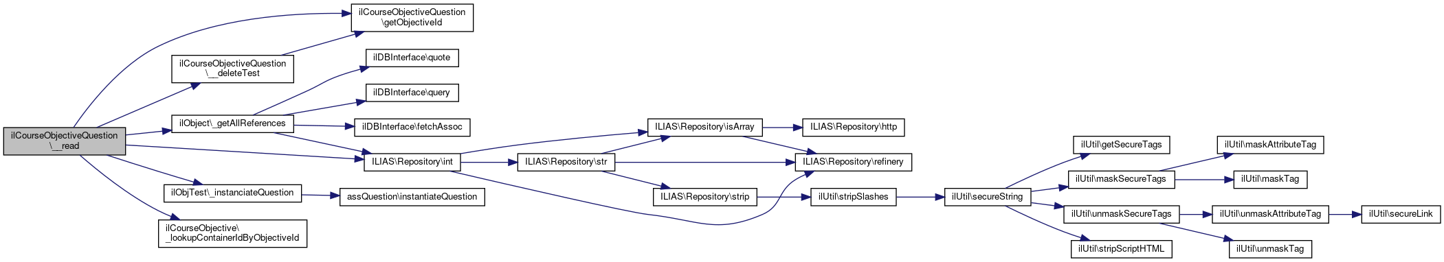 Here is the caller graph for this function:| ilCourseObjectiveQuestion::__read | ( | ) |