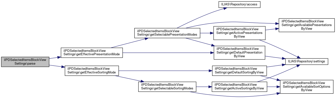 Here is the call graph for this function:| ilPDSelectedItemsBlockViewSettings::parse | ( | ) |