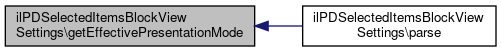 Here is the caller graph for this function:| ilPDSelectedItemsBlockViewSettings::getTilePresentationMode | ( | ) |