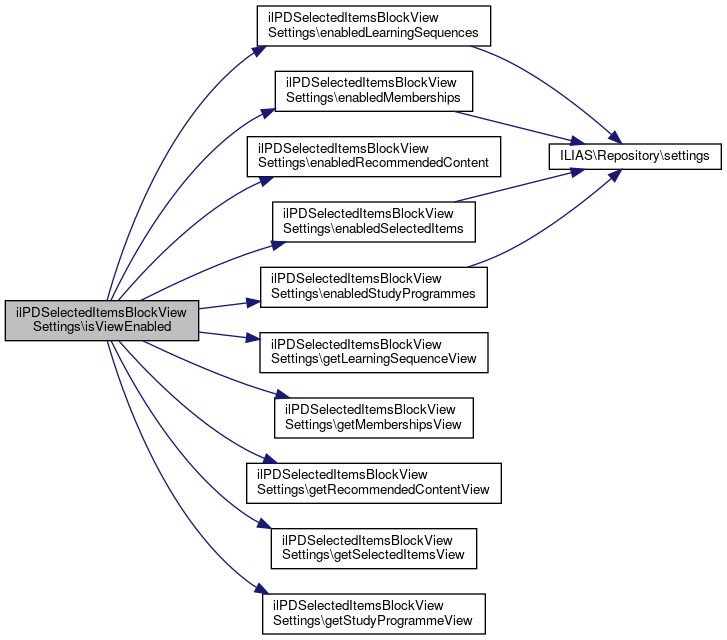 Here is the call graph for this function:| ilPDSelectedItemsBlockViewSettings::enabledLearningSequences | ( | ) |