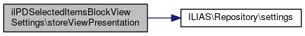 Here is the call graph for this function:| ilPDSelectedItemsBlockViewSettings::storeViewPresentation | ( | int | $view, |