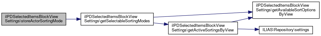 Here is the call graph for this function:| ilPDSelectedItemsBlockViewSettings::storeActorSortingMode | ( | string | $sortingMode | ) |