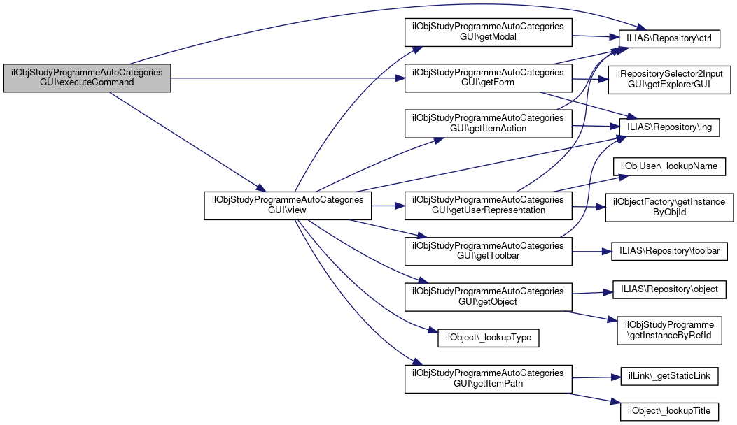 Here is the call graph for this function:| ilObjStudyProgrammeAutoCategoriesGUI::executeCommand | ( | ) |