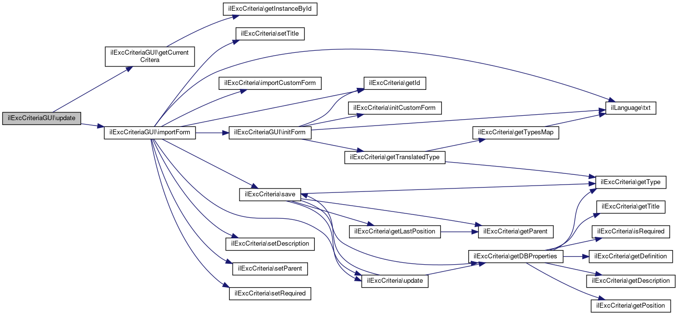References $ctrl, $lng, ilExcCriteria\getId(), ilExcCriteria\importCustomForm(), initForm(), ilExcCriteria\save(), ilExcCriteria\setDescription(), ilExcCriteria\setParent(), ilExcCriteria\setRequired(), ilExcCriteria\setTitle(), ilLanguage\txt(), and ilExcCriteria\update().