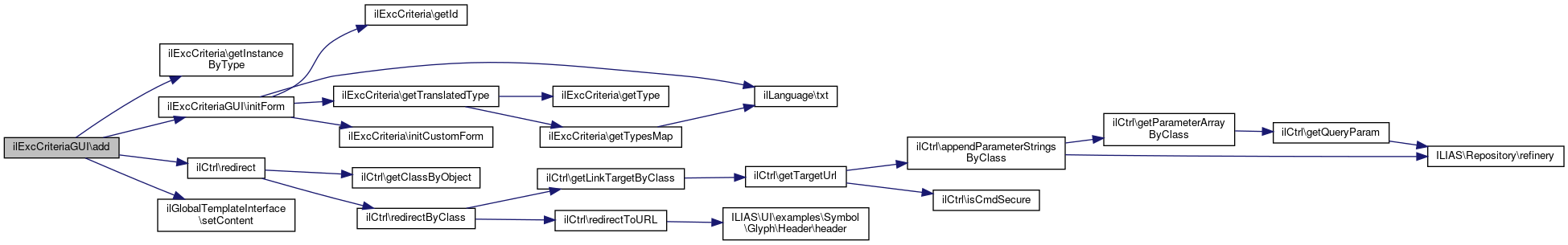 References $ctrl, $tpl, ilExcCriteria\getInstanceByType(), initForm(), ilCtrl\redirect(), and ilGlobalTemplateInterface\setContent().