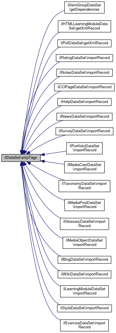 Referenced by ilItemGroupDataSet\getDependencies(), ilHTMLLearningModuleDataSet\getXmlRecord(), ilPollDataSet\getXmlRecord(), ilRatingDataSet\importRecord(), ilNotesDataSet\importRecord(), ilCOPageDataSet\importRecord(), ilHelpDataSet\importRecord(), ilNewsDataSet\importRecord(), ilSurveyDataSet\importRecord(), ilPortfolioDataSet\importRecord(), ilMediaCastDataSet\importRecord(), ilTaxonomyDataSet\importRecord(), ilMediaPoolDataSet\importRecord(), ilGlossaryDataSet\importRecord(), ilMediaObjectDataSet\importRecord(), ilBlogDataSet\importRecord(), ilWikiDataSet\importRecord(), ilLearningModuleDataSet\importRecord(), ilStyleDataSet\importRecord(), and ilExerciseDataSet\importRecord().