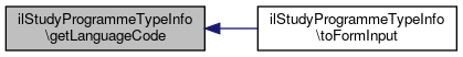 Here is the caller graph for this function:| ilStudyProgrammeTypeInfo::getLanguageCode | ( | ) |