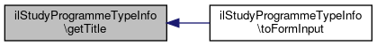 Here is the caller graph for this function:| ilStudyProgrammeTypeInfo::getTitle | ( | ) |