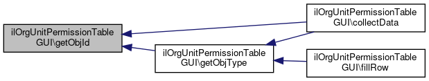 Here is the caller graph for this function:| ilOrgUnitPermissionTableGUI::getObjId | ( | ) |