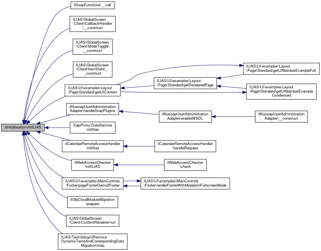 Referenced by ilSoapFunctions\__call(), ILIAS\GlobalScreen\Client\CallbackHandler\__construct(), ILIAS\GlobalScreen\Client\ModeToggle\__construct(), ILIAS\GlobalScreen\Client\ItemState\__construct(), ILIAS\UI\examples\Layout\Page\Standard\getUIContent(), ilNusoapUserAdministrationAdapter\handleSoapPlugins(), XapiProxy\DataService\initIlias(), ilCalendarRemoteAccessHandler\initIlias(), ilWebAccessChecker\initILIAS(), ILIAS\UI\examples\MainControls\Footer\pageFooterDemo2Footer(), ilObjCloudModuleMigration\prepare(), ILIAS\GlobalScreen\Client\ContentRenderer\run(), and ILIAS\Test\Setup\ilRemoveDynamicTestsAndCorrespondingDataMigration\step().